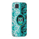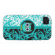 Elegantes, buntes und schönes kundenspezifisches Schwarzes, Weiß und Türkisdamastmuster mit Eule iPhone 4 Hüllen und Geschenke für Geburtstage, Weihnachten oder irgendeine Gelegenheit. Niedliche Eule iPhone Hüllen!
