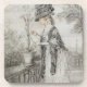 Dame auf einer Terrasse, die eine Getränkeuntersetzer