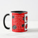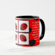 Kaffee-Tasse, die vier Marienkäfer und zwei Legenden über sie kennzeichnet.