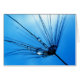 Grußkarte, die sich ein schönes nahes eines Löwenzahnsamens besprüht mit kleinen Tautropfen zeigt.