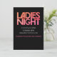 Damenabend-Dekoratives Textdesign für Junggesellinnenabschied oder andere weibliche Anlässe. Groovy, Retro-Disco-Design. Orange, rosa Farbton. Erstellen Sie Ihre eigene Einladung oder Ankündigung, indem Sie Ihren eigenen Text im EDIT-Modus hinzufügen.