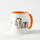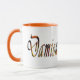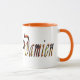 Damien, Logo, Tasse, Featured is a black and orange Damien cursive logo, siehe Auswahlmöglichkeiten für Farboptionen, https://www.zazzle.com.au/naturalcauses