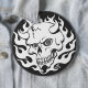 Dämonenschädel in Flammen Button