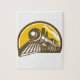 Ikonenartillustration eines Dampf-Lokomotivbahnzugs angesehen von einem Set des niedrigen Winkels innerhalb des Kreises auf abgeschiedenem Hintergrund.