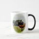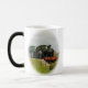 Eine Tasse mit einem Bild eines Dampfzugs. Dieses würde ein reizendes Weihnachtsgeschenk für jedermann interessiert an Zügen machen. Besonders erscheint die verwandelnde Tasse, die wenn Kälte schwarz ist, aber, wenn heiße Flüssigkeit in sie gegossen wird, das Bild