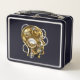 Konzeptioneller, mechanischer, menschlicher Kopf mit antiken Manometer und Metallgetrieben vor grauem industriellem Hintergrund. Steampunkstil.