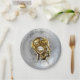 Konzeptioneller, mechanischer, menschlicher Kopf mit antiken Manometer und Metallgetrieben vor grauem industriellem Hintergrund. Steampunkstil.