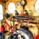 Der Dampfzug zeigt die Kontrollen von der Fußplatte des Dampfzuges.