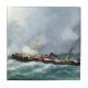 Édouard Adam Steam Segelschiff Finsbury in einem stürmischen Meer 1881. Die Finsbury wurde später als Pennington bekannt. Im Jahr 1880 sah eine Mutter und Tochter einem großen Schiff zu, das in London durch die Themse fuhr. Ein Segelschiff an der Themse brachte Produkte für den Londoner Markt. Die SS Finsbury ging vermisst, nachdem sie am 22. September 1903 von Kobe aus segelte