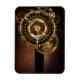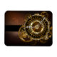 Antike, fantastische Uhren mit Gold- und Messinggetrieben auf braunem, rostigem Hintergrund. Steampunkstil.