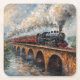 Dampfzug auf einer Brücke - Ölgemälde Rechteckiger Pappuntersetzer