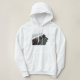 Ein schwarzer Dampfzug, der die Gleise entlang fährt. Dieses Design sieht wirklich effektiv aus bei diesem weiblichen Hoodie