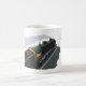 Ein schwarzer Dampfzug, der die Gleise entlang fährt. Dieses Design sieht auf dieser Tasse wirklich effektiv aus