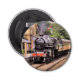 Ein Kunstdesign eines wunderschön restaurierten Dampfzuges und Kutschen.