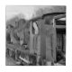 Ein Schwarz-Weiß-Foto-Design alter rostender Dampfzüge wartet auf die Restaurierung.