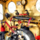 Der Dampfzug zeigt die Kontrollen von der Fußplatte des Dampfzuges.