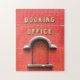 Ein fotografisches Design der Vorderseite eines alten Bahnhofsbüros, wo Sie Ihre Fahrkarten bei uns kaufen können.