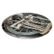 Ein fotografisches Design des Rades aus einem Dampfzug.