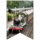 Eine wunderschön restaurierte Dampfbahn und Waggons vergangener Zeiten, die am Bahnhof ankommen.
