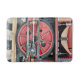 Ein fotografisches Design des Rades aus einem Dampfzug.