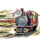 Wales, das Land der kleinen Dampfzüge. Diese kleinen walisischen Dampfzüge wurden hauptsächlich für den Tonschiefer aus den Steinbrüchen verwendet. Eine digitale Ölmalerei.