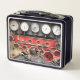 Die Dampfzug-Fahrer schauen von der Fußplatte der Spurweiten und Kontrollen des Zuges aus.