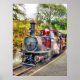 Eine schön restaurierte rote Dampfbahn und Wagen.