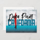 Dana Point California Surfdesign. Ein rotes Surfbrett mit blauem und türkisfarbenem Text - Typografie Surfer Thema.
