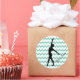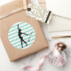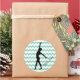 Runde Aufkleber mit Gymnast/Tänzer-Silhouette und Zickzack Hintergrund. Anpassen des Namens oder Teams.