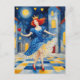 Dance Lady mit Red Hair Blue Dress Gold Crown Postkarte