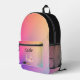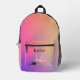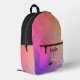 Lightweight and durable, our custom all-over-print Backpack is just what you need. The spacious interior is ideal for travel, school, gym, or any mobile storage need. Bring your stuff with you in style! Features Adjustable padded shoulder straps, two chambers on the inside for laptop storage, mesh side pockets and an identification label.