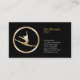 Diese einfache Choreograf-Visitenkarte enthält einen Jet-Black-Hintergrund mit einem goldenen Tanzsymbol auf der links Seite der Karte, während Ihr Name, Ihr Titel und Ihre Kontaktdaten auf der rechten Seite erscheinen. Geeignet für Unterhaltung, Unterhaltung, Party, Spaß, Kinder, Kinder, Ansammlungen, Party, Tanzthemen.