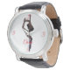 Uhr, Klassische Damenuhr mit schwarzen Lederarmband