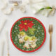 Dancing Baby Angels hängt von einer Poinsettia Blume mit goldfarbenen und weißen Schneeflocken auf grünem Hintergrund und machen feierliche Feiertagszeitung Teller.