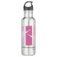 Eine Wasserflasche aus rostfreiem Stahl mit Silhouetten von Ballerinen auf rosa und lavendelfarbenen Rechtecken. Das Zitat von Martha Graham am unteren Rand - Tanz ist die versteckte Sprache des Souls.