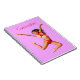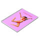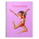 Das schwarzhaarige rote Bikini-tragende Mädchen springt hoch zum Tanzen, um es individuell zu gestalten, indem es seinen Namen ändert