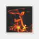 Dieses Set aus Papierservietten zeigt die Feuerenergie in einem Holzofen. Die Flammen in Orange, Gold und Gelb erscheinen als fröhliche Tanzfiguren. Sie sind von einem schwarzen Hintergrund abgeschnitten.