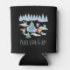 Kann kühler mit einer skurrilen Weihnachtsszene. Gute Waldtiere tanzen um einen verzierten Weihnachtsbaum herum. Festlicher Urlaub Aquarell Design. Im Text steht: Frieden Liebe & Freude.