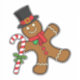 Eine Illustration eines glücklichen, tanzenden Lebkuchenmannes mit einem Oberhut und einem Bonbonstock. Während der Weihnachtsfeiern sind Lebkuchen und Bonbons immer präsent. Ein Lebkuchen zu backen ist ein Weg, um mit der Familie zu verbinden und Kinder glücklich zu machen.