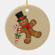 Eine Illustration eines glücklichen, tanzenden Lebkuchenmannes mit einem Oberhut und einem Bonbonstock. Während der Weihnachtsfeiern sind Lebkuchen und Bonbons immer präsent. Ein Lebkuchen zu backen ist ein Weg, um mit der Familie zu verbinden und Kinder glücklich zu machen.
