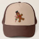Eine Illustration eines glücklichen, tanzenden Lebkuchenmannes mit einem Oberhut und einem Bonbonstock. Während der Weihnachtsfeiern sind Lebkuchen und Bonbons immer präsent. Ein Lebkuchen zu backen ist ein Weg, um mit der Familie zu verbinden und Kinder glücklich zu machen.