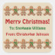 Dieser festliche Aufkleber, der mit zwei Reihen tanzender Lebkuchengebäck geschmückt ist, ist ein großartiges Etikett für ein wunderbares Weihnachtsgeschenk. Passen Sie es heute mit Ihrer eigenen Formulierung an und überraschen Sie jemanden lieber in dieser Ferienzeit mit Ihrer ursprünglichen Kreation.