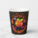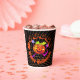 Niedliche kleine, lächelnde Kürbis tanzt über konzentrische Kreise. Pumpkin trägt rot-schwarz gestreifte Strumpfhosen an seinen Beinen und Armen. Lila Tanzhausschuhe und lila Handschuhe runden das lustige Kleid ab. Ein köstlich fröhliches Halloween-Party. Originelles Design von Anura Design Studio.
