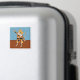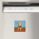 Ein plumpfes, lächelndes Kätzchen trifft eine Pose auf diesen niedlichen Magneten. Die beige Kitty ist in einem farbenfrohen Harlequin-Kostüm in Orangetönen, Blau, Gelb und Rot gekleidet. Der Look wird durch eine weiße Spitzen-Rüsche und einen breiten schwarzen Gürtel mit einem großen goldenen Schnürchen ergänzt. Die Katze trägt auch eine gelbe Maskerade-Maske. Er tanzt auf einem holzgekachelten Boden vor einem blauen Hintergrund voller musikalischer Noten. Dieses Design bringt jedem Katzenliebhaber ein Lächeln ins Gesicht. Aus meinem digital erzeugten Mixed Media Image.