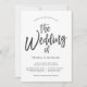 Eine einmalige Hochzeitseinladung mit Tanzskripten-Schriftzeichen, gefolgt von Ihren einzigartigen Hochzeitstagsdetails in Schwarz und Weiß.