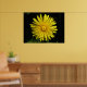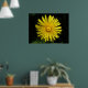 Dieses hübsche Blumenposter zeigt ein Foto einer Blume aus gelbem Löwenzahn. Das Foto wurde mit Makrofotografie gemacht, was zu so brillanten Details führte, dass man die einzelnen Blätter und die Schatten, die auf sie gegossen wurden, sehen kann. Um den Druck ist ein gelber Rahmen.
