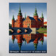 Treten Sie ein in ein Märchen mit dieser eleganten dänischen Postkarte mit dem Schloss Frederiksborg. Mit seinen Türmen aus roten Ziegeln, grünen Türmen und ruhigen Wasserspiegeln feiert dieses Vintage Design die Romantik und Geschichte des mittelalterlichen Europas.