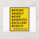 "DAS FAHREN ERZEUGT NIE HERVORRAGENDE ERGEBNISSE" Die Gestalt "GEFAHR" auf dem Autobahnschild