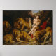 Daniel in the Lion's Den von Peter Paul Rubens, ausgestellt in der National Gallery of Art, zeigt Daniel in der Löwenhöhle, umgeben von lebensgroßen Löwen. Er sitzt auf einem farbenfrohen roten Tuch und hat ein weißes Tuch, das ihn umwickelt hat. Sein Körper ist angespannt, seine Beine gekreuzt und seine Arme zusammen. Angesichts des Lichts im Hintergrund scheint es, dass dieses Gemälde den Augenblick am Morgen einfängt, nachdem Daniel eine ganze Nacht in der Halle verbracht hat. Daniel betet mit verschränkten Händen und er schaut in die Luft. Einige Löwen schlafen, andere schauen uns direkt an, andere brüllen oder wachsen. Im Vordergrund sind Knochen und Schädel als Beweis dafür, dass die Löwen bereits einige Menschen gefressen haben. Allerdings sitzt ein junger Daniel am Leben mitten in der Höhle. Weitere Informationen zu dieser Arbeit finden Sie unter https://www.tripimprover.com/blog/daniel-in-the-lions-den-by-peter-paul-rubens.