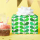 Umschlagpapier in einem zeitgenössischen dänischen inspirierten Textil-Muster aus stilisierten Blätter - Grüntöne, von leicht Limon bis dunkel Smaragd, auf weißem Hintergrund